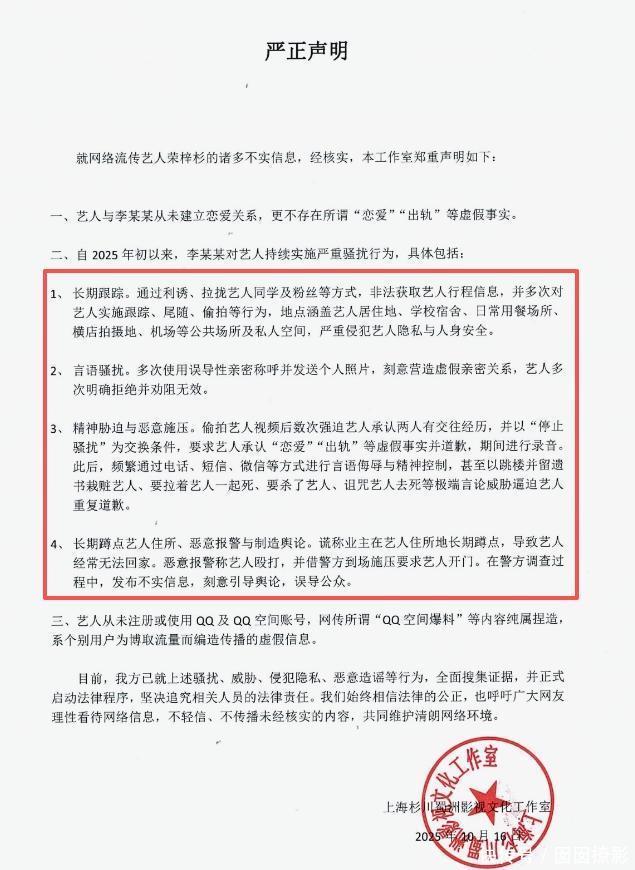 没想到,荣梓杉的经纪人倒打一耙,说李禹熹是疯狂女粉丝,长期骚扰男方,还私闯民宅。